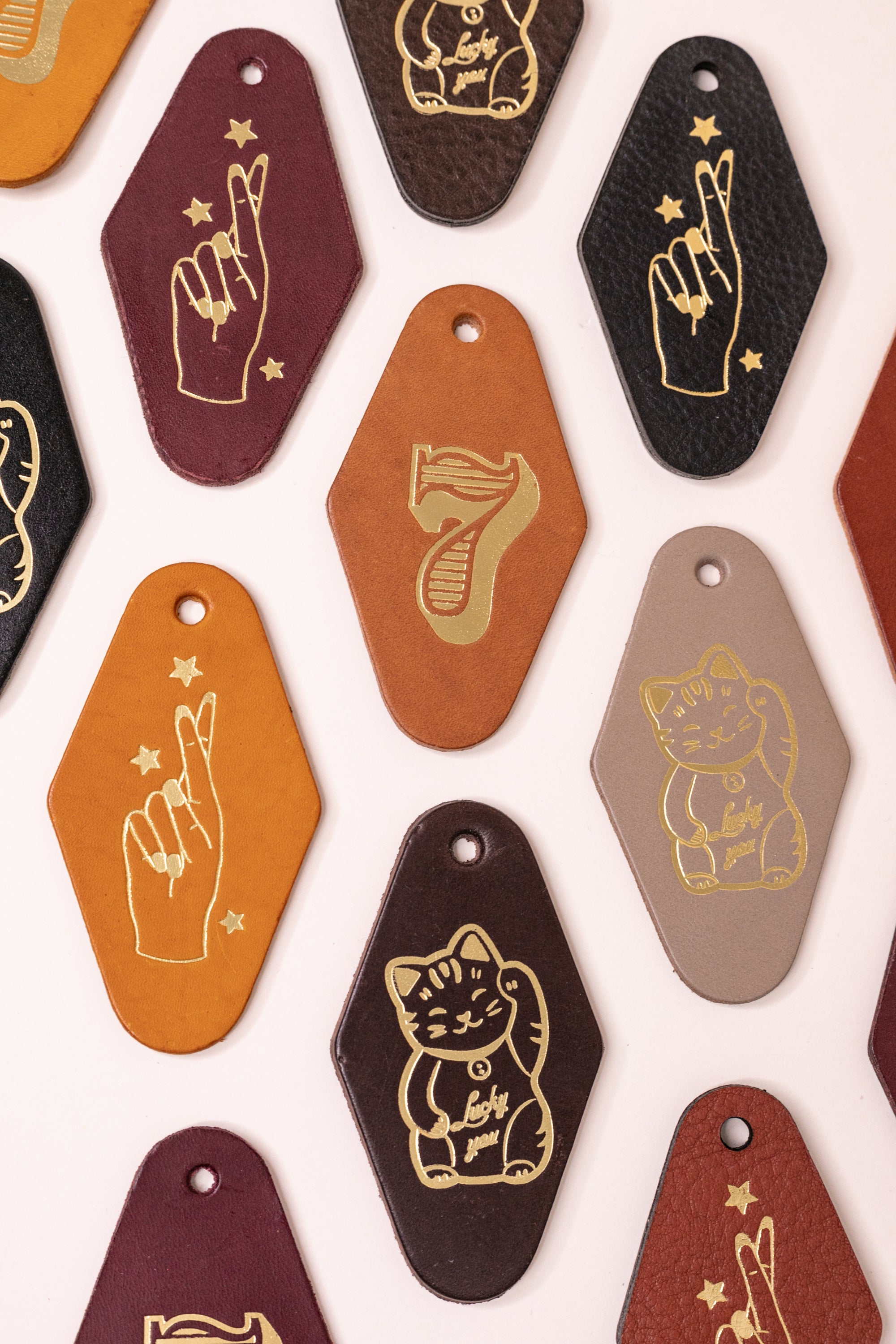 Les matières disponibles sont, le cuir, le papier, le plexiglass et le bois